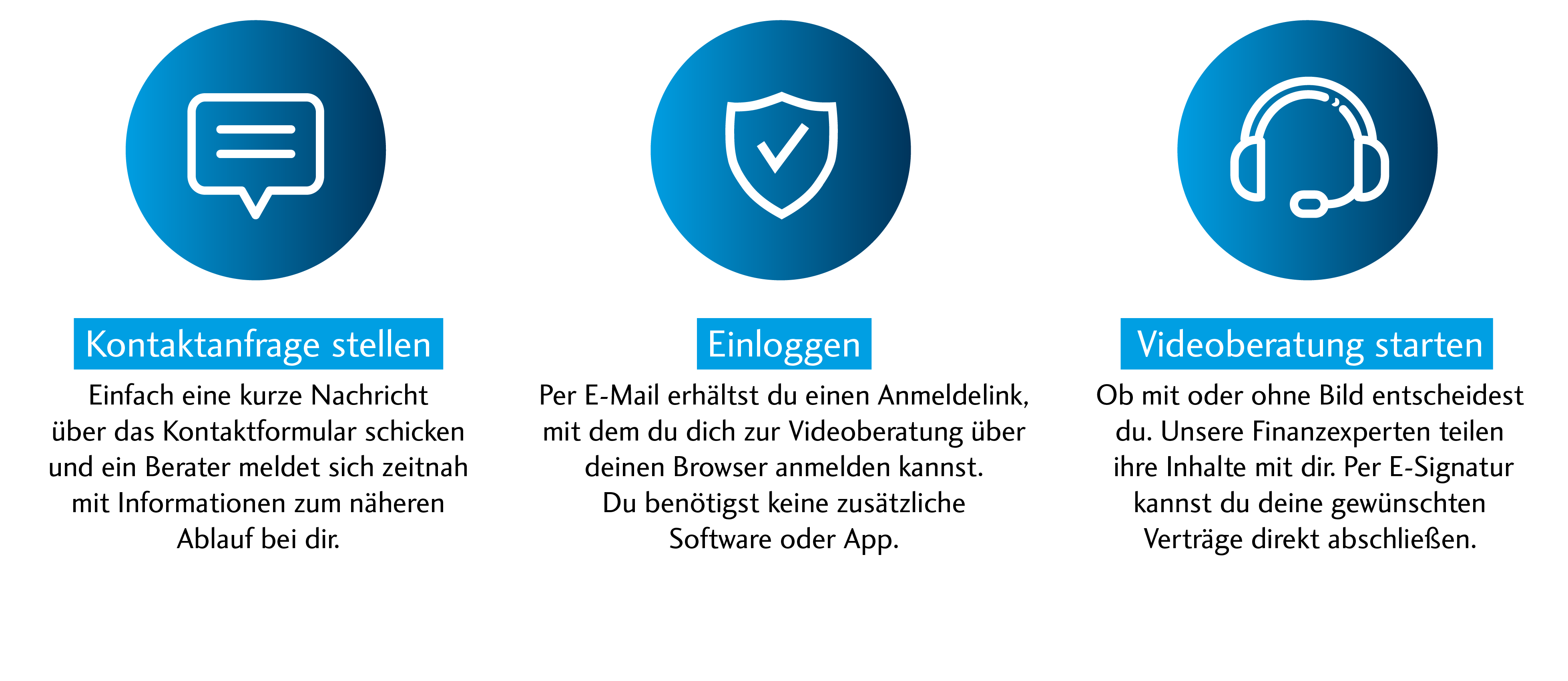 Deine endlose Suche hat ein Ende! In der Videoberatung erhältst du Antworten auf deine persönlichen Finanzfragen im digitalen Gespräch. Jetzt gemeinsam mit uns deinen eigenen Finanzplan aufstellen oder Versicherungs- und Finanzverträge checken, um monatlich zu sparen oder mehr Leistung zu bekommen! Unsere Finanzexperten beraten dich persönlich, direkt und unkompliziert – ganz bequem per Video.