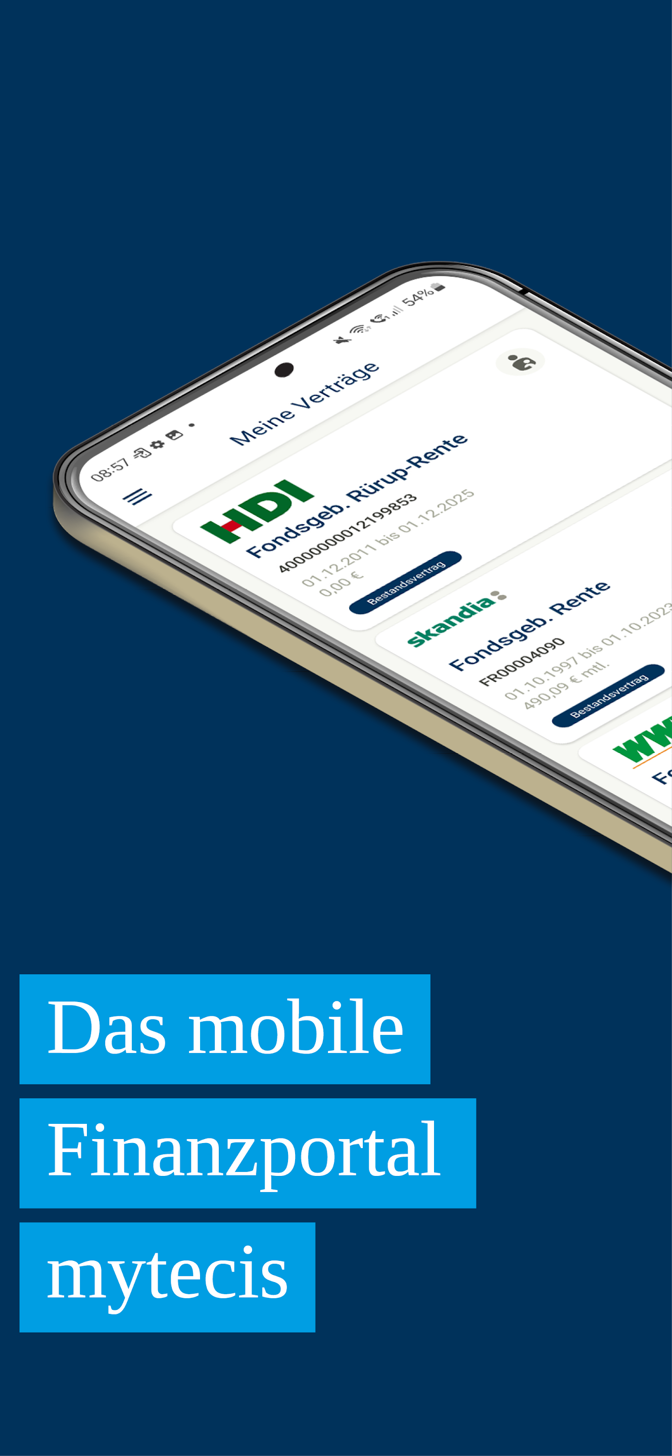 Finanzen und Versicherungen auf einen Blick – wann, wo und wie du willst. Verwalte mit mytecis unkompliziert alle deine Online-Banking-Konten, Online-Depots und Versicherungen. Lästiges Suchen von Unterlagen? Vergangenheit! In diesem Portal kannst du alle Versicherungen übersichtlich verwalten und sicher archivieren.