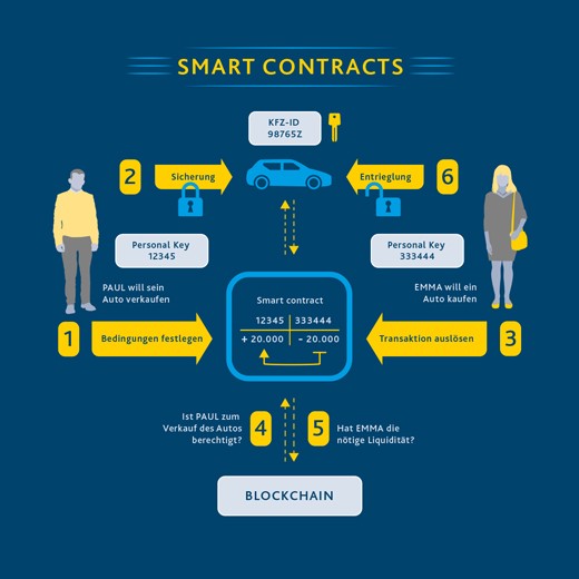 Innerhalb eines Blockchain-Netzwerkes können alle Teilnehmer unmittelbar und ohne zentrale Kontrollinstanz miteinander Geschäfte machen. Anders als in unserer heutigen Welt ist keine Bank, Behörde oder Online-Plattform wie Paypal, eBay oder Uber vorhanden, um Transaktionen der Teilnehmer durch eigene Prüf- und Sicherheitsmechanismen zu überwachen und zu bestätigen. Das klingt zwar ungewohnt und irgendwie unsicher – doch als Grundlage virtueller Währungen sind beim Blockchain-Prinzip automatische Sicherheitsvorkehrungen eingebaut. Und das geht so: Jede neue Transaktion, zum Beispiel ein Bitcoin-Kauf, sorgt für einen neuen Eintrag im dezentralen Kassenbuch. Dazu wird mittels Kryptotechnologie, einer Verschlüssungstechnologie, ein alphanumerischer Code – Block – generiert. Dieser basiert dabei auf dem Code des vorherigen Eintrags. So entsteht eine Block-Kette, also eine Blockchain, in der sich alle bisherigen Einträge niederschlagen.